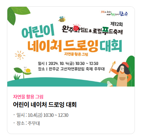 자연 속에서 즐기는 짜릿한 미식 체험! 청명한 가을 하늘과 신선한 공기를 만끽하며, 가족, 친구, 연인과 함께 색다른 여행을 떠나고 싶으신가요? 그렇다면 전라북도 완주에서 매년 열리는 2024년 완주 와일드푸드 축제를 추천드립니다.