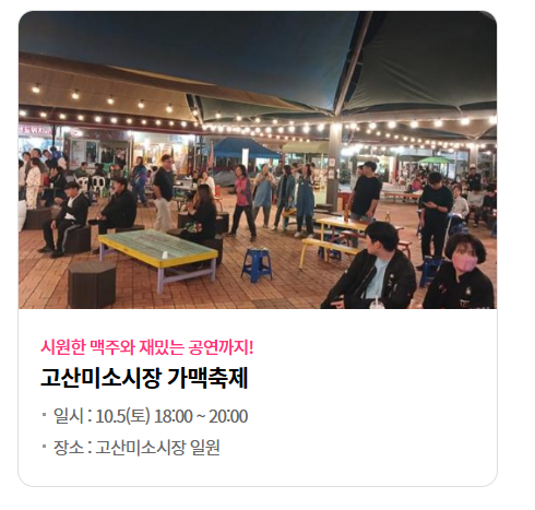 시원한 맥주도 마시고, 상쾌한 가을바람 맞으며 공연까지 즐길 수 있는 이벤트인 가맥축제인데요.