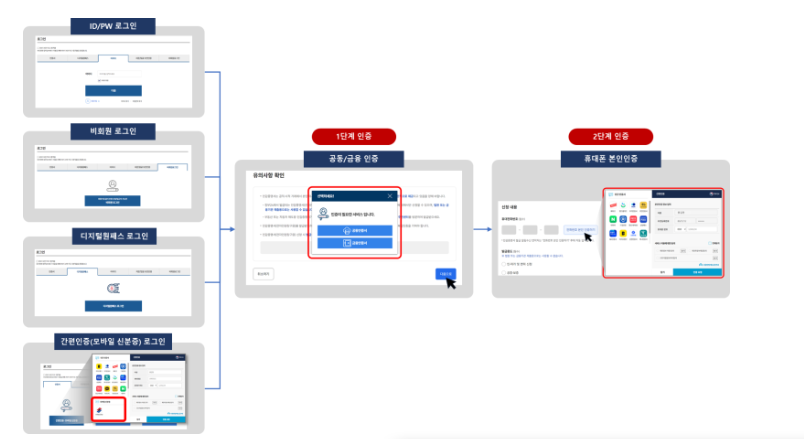 ID/PW, 비회원, 디지털원패스, 간편인증(모바일신분증)