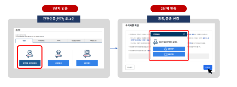 공동/금융, 지문/얼굴, 간편인증(민간)으로 로그인 하신 경우 한번 더 본인인증 하시면 됩니다.