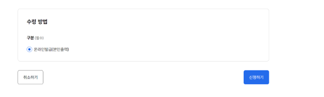 ⑤ 신청하기 버튼을 클릭하시면 발급 신청이 완료됩니다.